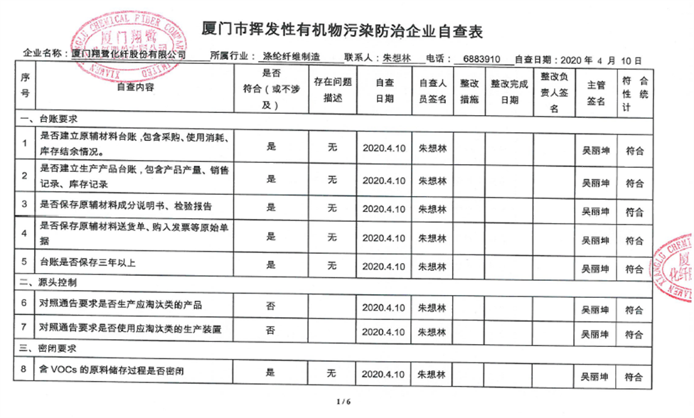 廈門市揮發(fā)性有機(jī)物污染防治企業(yè)自查表(2020年第二季度)