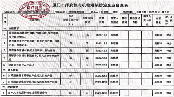 翔鷺化纖 廈門(mén)市揮發(fā)性有機(jī)物污染防治企業(yè)自查表 (2020年 第四季度).docx