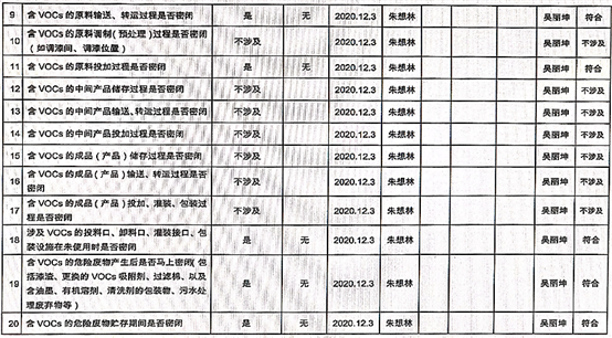 廈門(mén)市揮發(fā)性有機(jī)物污染防治企業(yè)自查表 (2020年 第四季度)